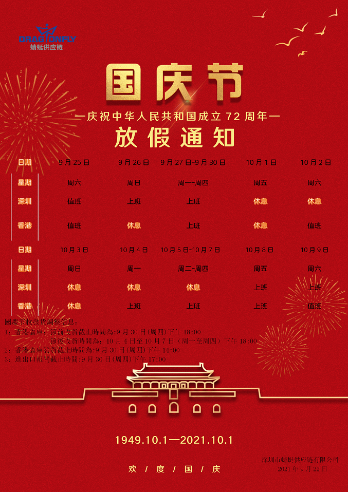 深圳: 10月1日-10月7日放假7天
