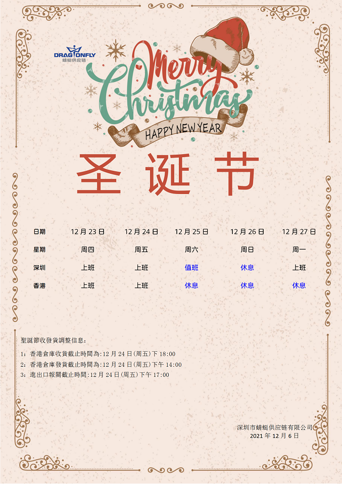 香港:12月25日-12月27日放假3天。