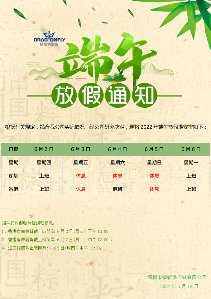 根据国家法定节假日规定,结合公司研究决定,关于2022年端午节的放假时间安排如下: